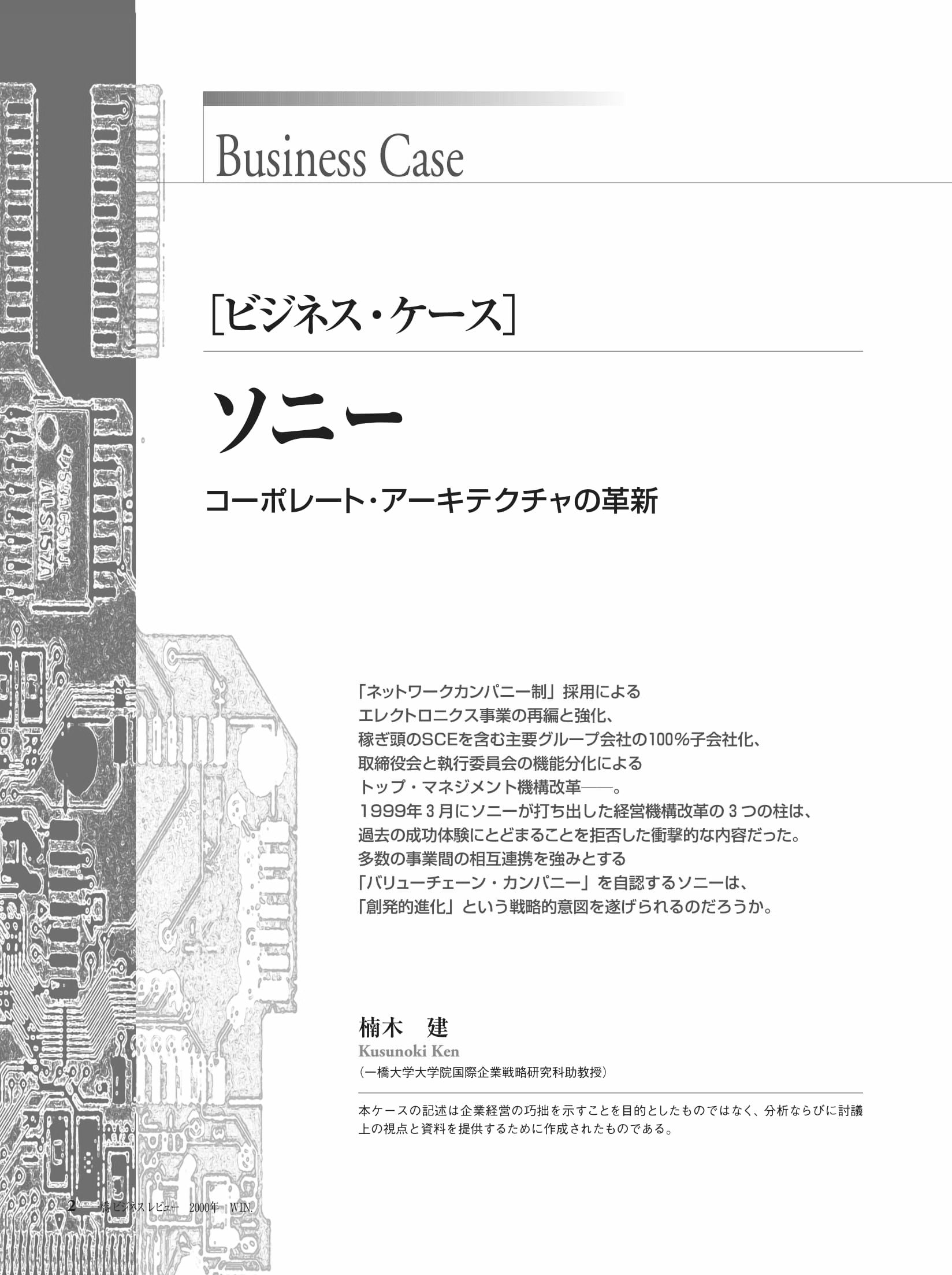 「ネットワークカンパニー制」採用によるエレクトロニクス事業の再編と強化、稼ぎ頭のSCEを含む主要グループ会社の100%子会社化、取締役会と執行委員会の機能分化によるトップ・マネジメント機構改革。1999年3月にソニーが打ち出した経営機構改革の3つの柱は、過去の成功体験にとどまることを拒否した衝撃的な内容だった。多数の事業間の相互連携を強みとする「バリューチェーン・カンパニー」を自認するソニーは、「創発的進化」という戦略的意図を遂げられるのだろうか。