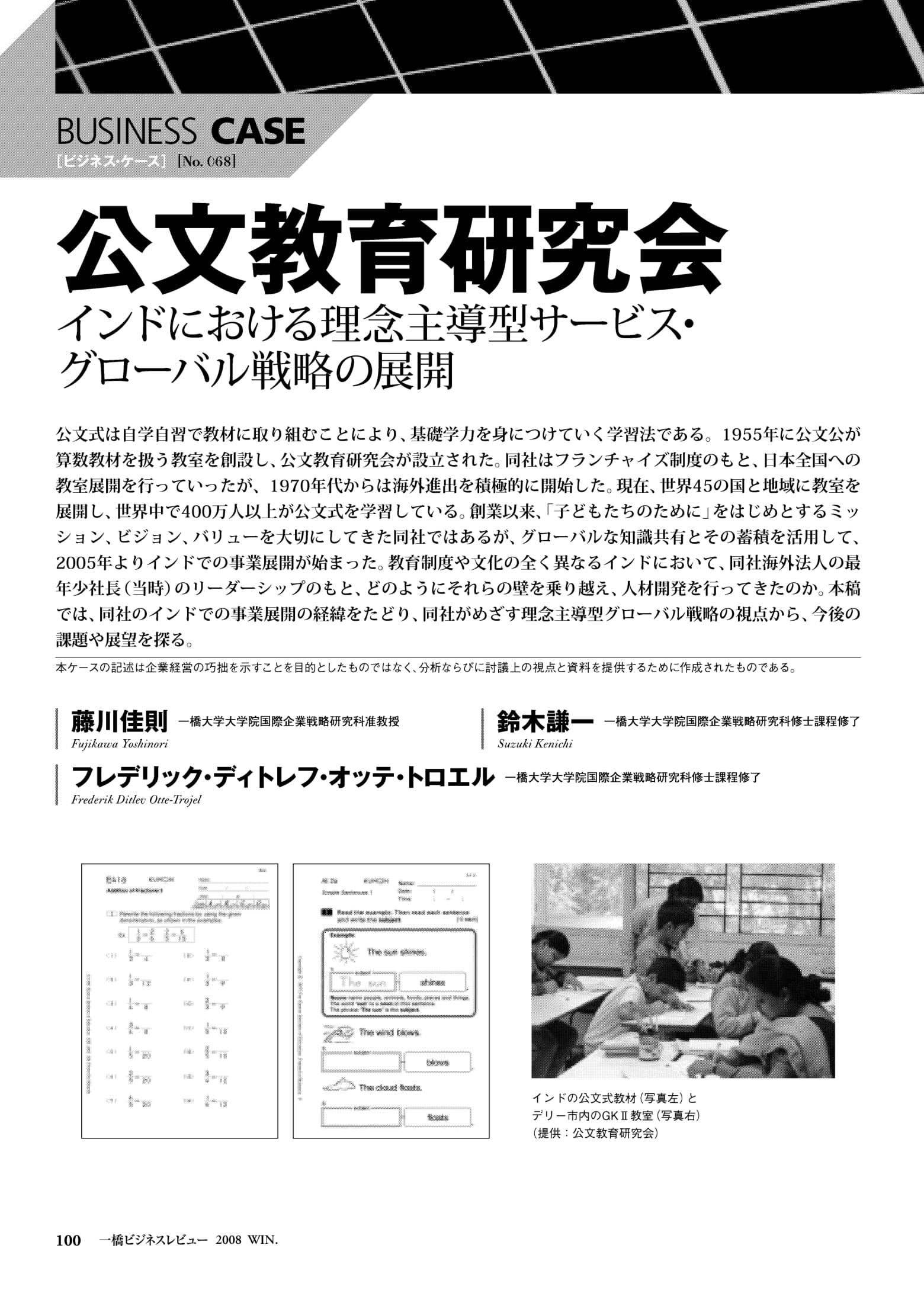 公文教育研究会 : インドにおける理念主導型サービス・グローバル戦略の展開