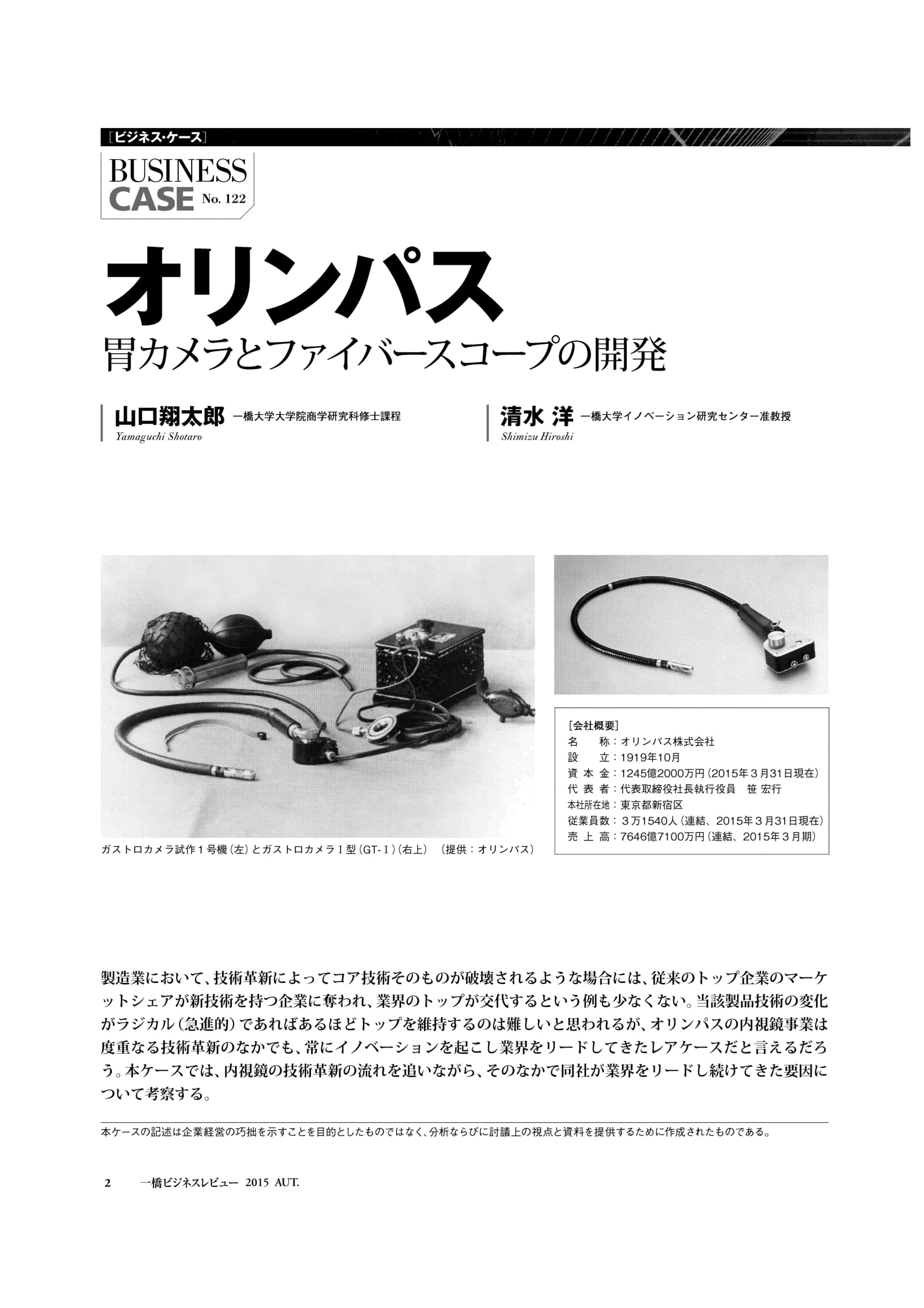 製造業において、技術革新によってコア技術そのものが破壊されるような場合には、従来のトップ企業のマーケットシェアが新技術を持つ企業に奪われ、業界のトップが交代するという例も少なくない。当該製品技術の変化がラジカル(急進的)であればあるほどトップを維持するのは難しいと思われるが、オリンパスの内視鏡事業は度重なる技術革新のなかでも、常にイノベーションを起こし業界をリードしてきたレアケースだと言えるだろう。本ケースでは、内視鏡の技術革新の流れを追いながら、そのなかで同社が業界をリードし続けてきた要因について考察する。